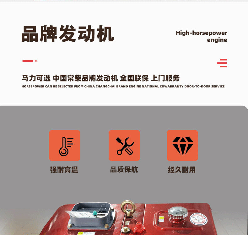 4.36马力柴油发动机,48小时登门服务(偏远地区除外),动力强大,燃油低,采用寿命长,无忧结实。