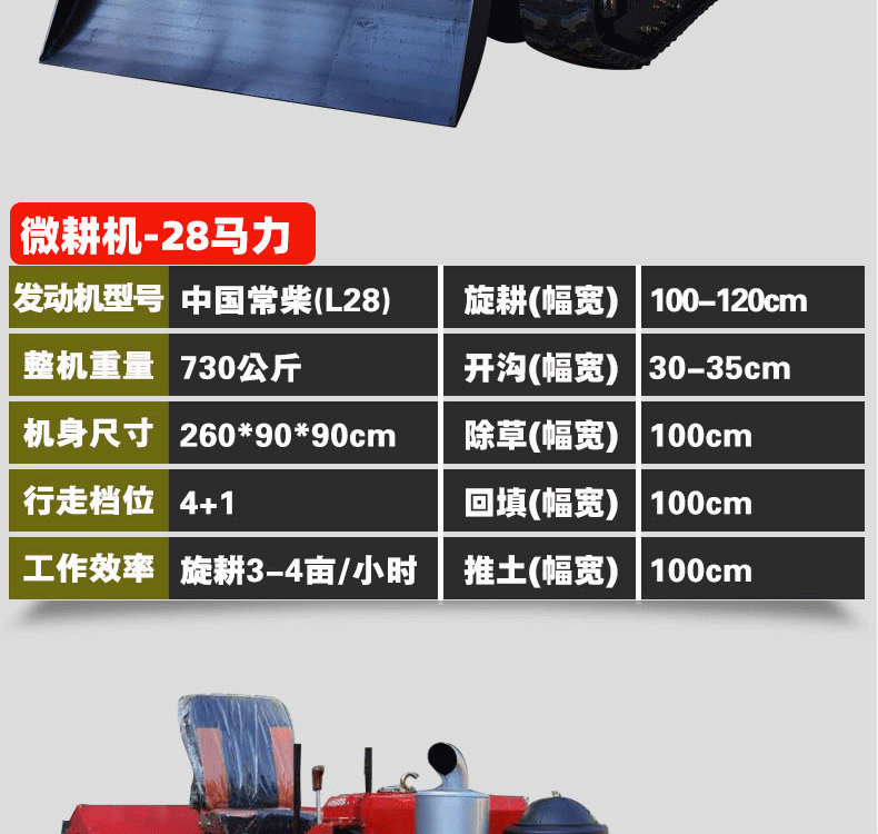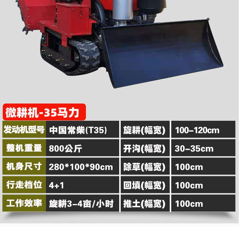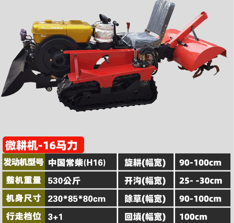产品详情:该产品使用履带驱动设计,具有很强的稳定性和爬坡能力。它适用于丘陵,山峰和冲积平原的各种地貌。该模型小而强劲。它适用于转动耕作,土壤疏松和各种行,温室和花园中果树的开沟。,回填,土壤耕作,起垄,除草,施肥,喷洒等作业。